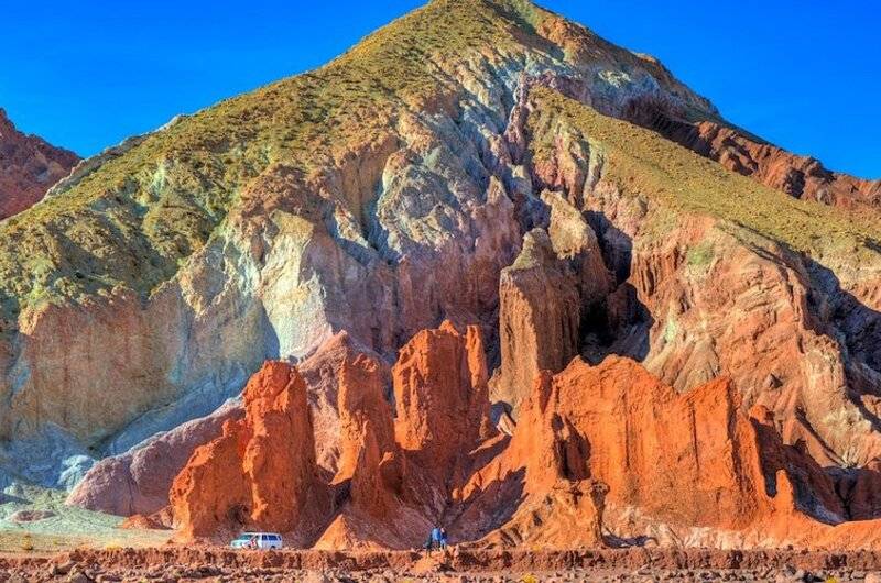 Montanhas coloridas e arte rupestre milenar.